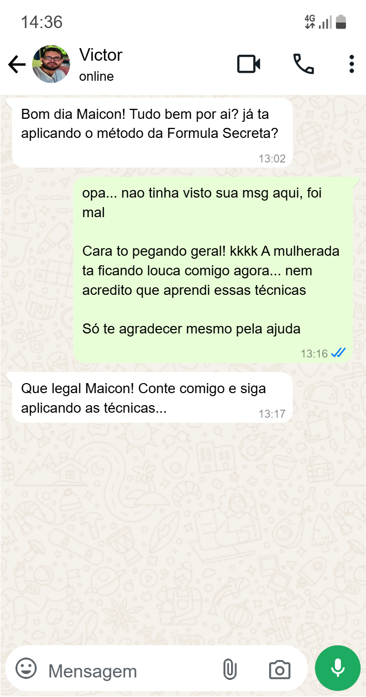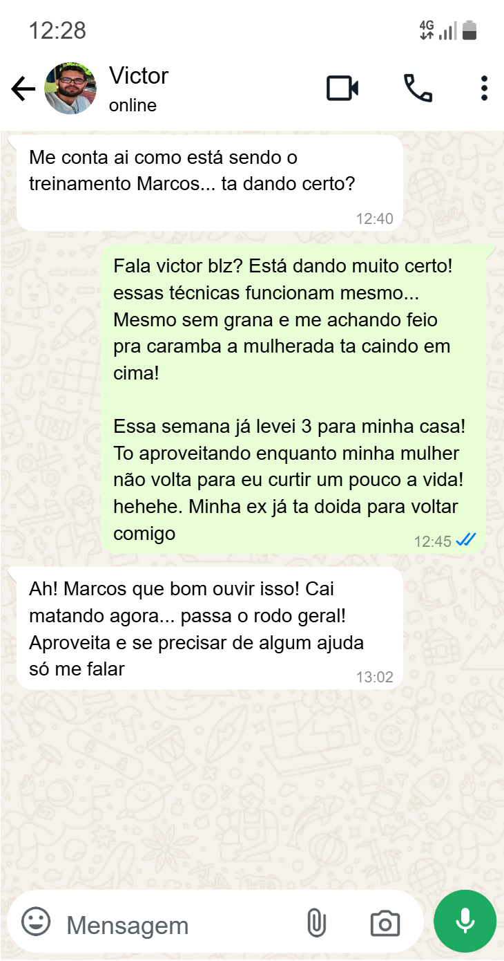 Aqui é hora de levar as coisas para o próximo nível. A noite não é mais fácil ou mais difícil do que o dia. É apenas diferente…. Essa é a reta final de todo o treinamento, ao finalizar você se tornará aquele homem que atrai mulheres com facilidade como você sempre sonhou.